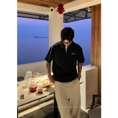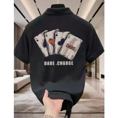 香港it潮牌夏季新款美式扑克印花短袖T恤男士重磅轻奢翻领polo衫