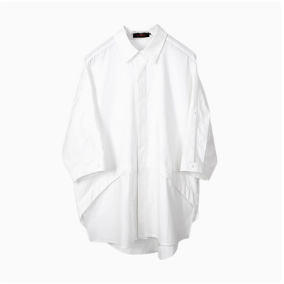 牧木男装原创设计港风宽松廓形燕尾中袖白色休闲衬衫男白衬衣男潮