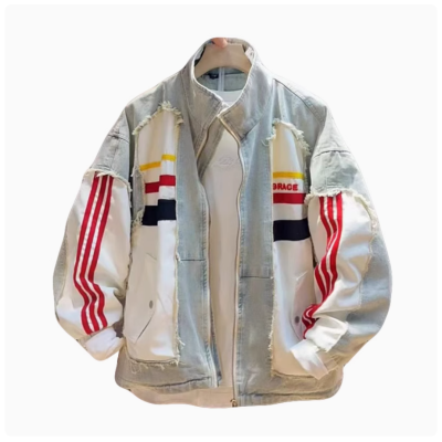 春季新款宽松拼接立领牛仔外套男士潮牌时尚痞帅休闲夹克情侣上衣