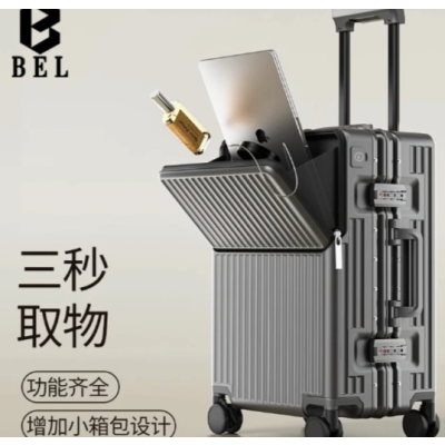 90分咖啡箱前开口行李箱女20寸商务旅行登机箱侧开盖拉杆箱25寸男