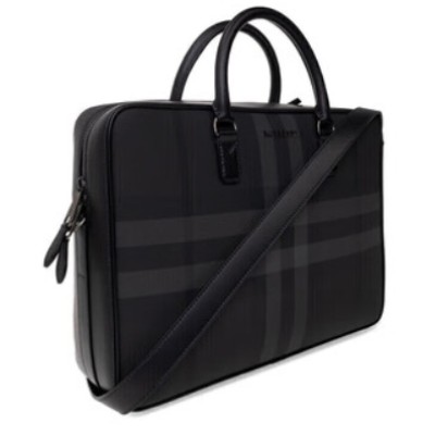 博柏利(BURBERRY)男包 字母LOGO印花经典格纹公文包手提单肩包七夕 黑色8065338
