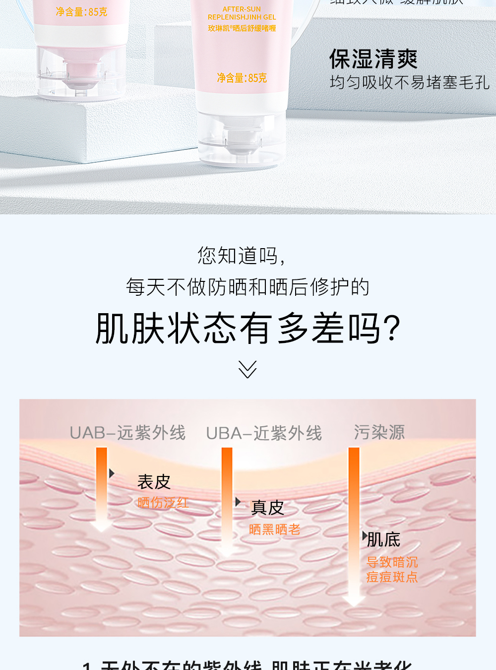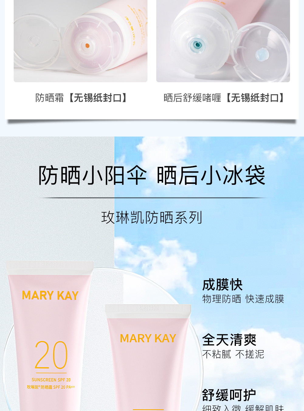 玫琳凯防晒霜晒后舒缓啫喱系列物理隔离紫外线