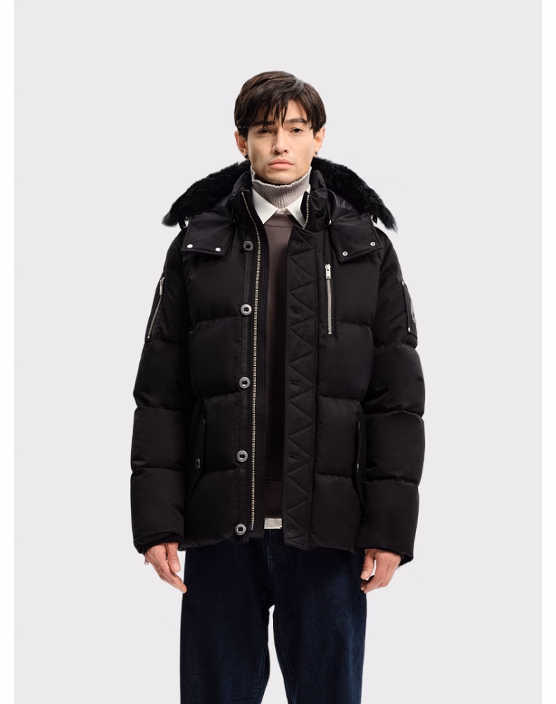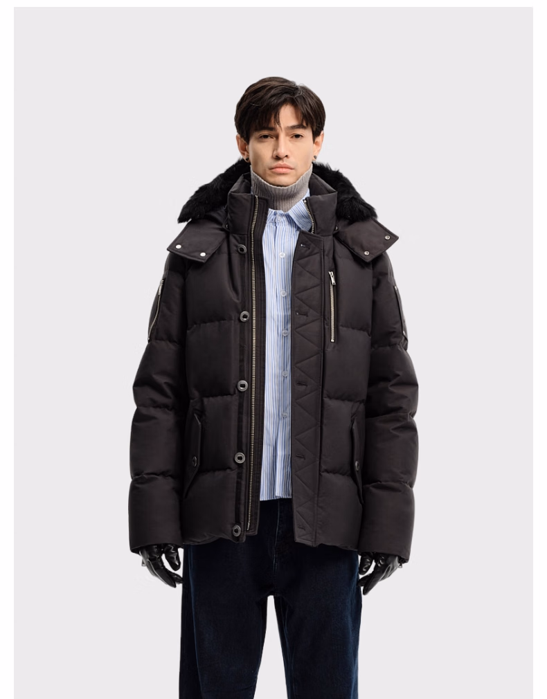 男士鹅绒毛领羽绒服 黑色 M