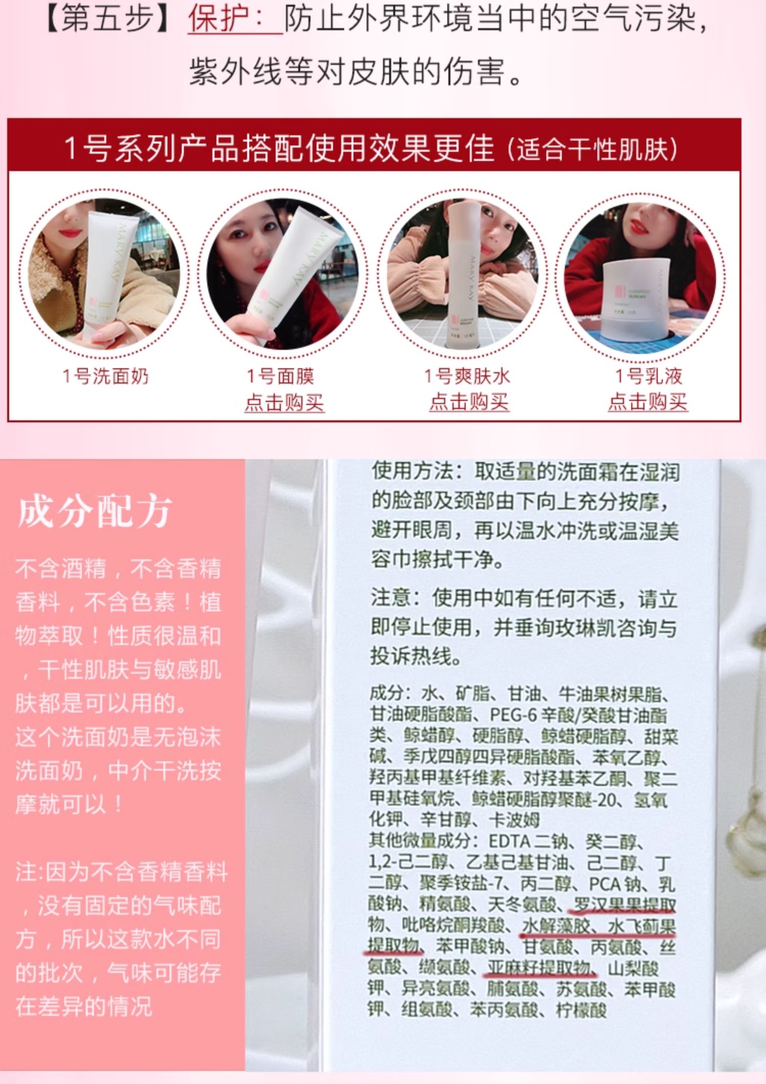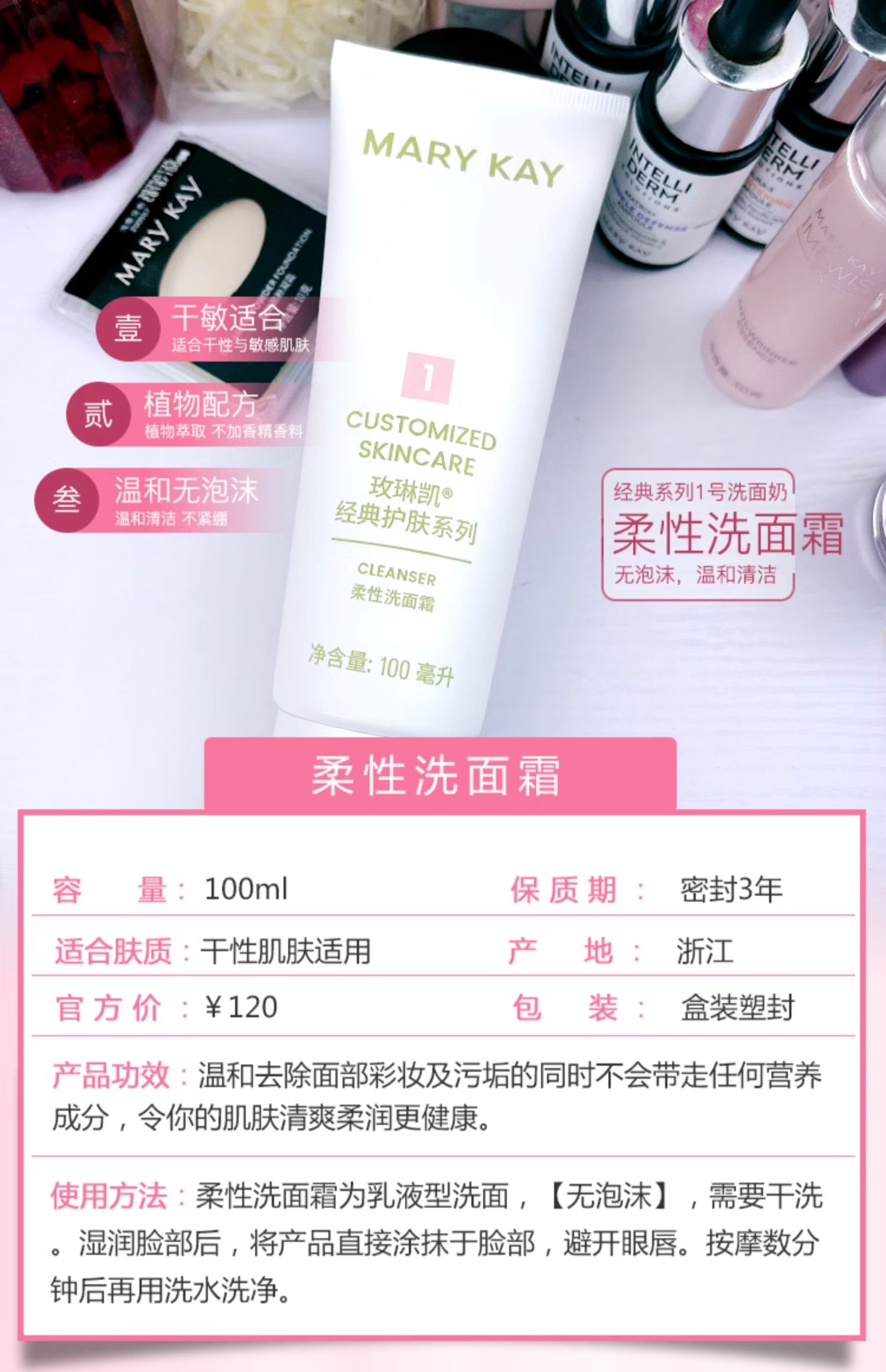 玫琳凯1号洗面奶女柔性洁面霜温和补水清洁保湿