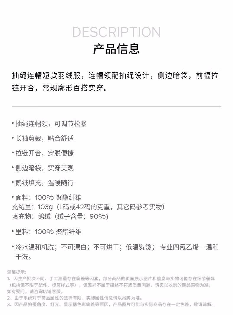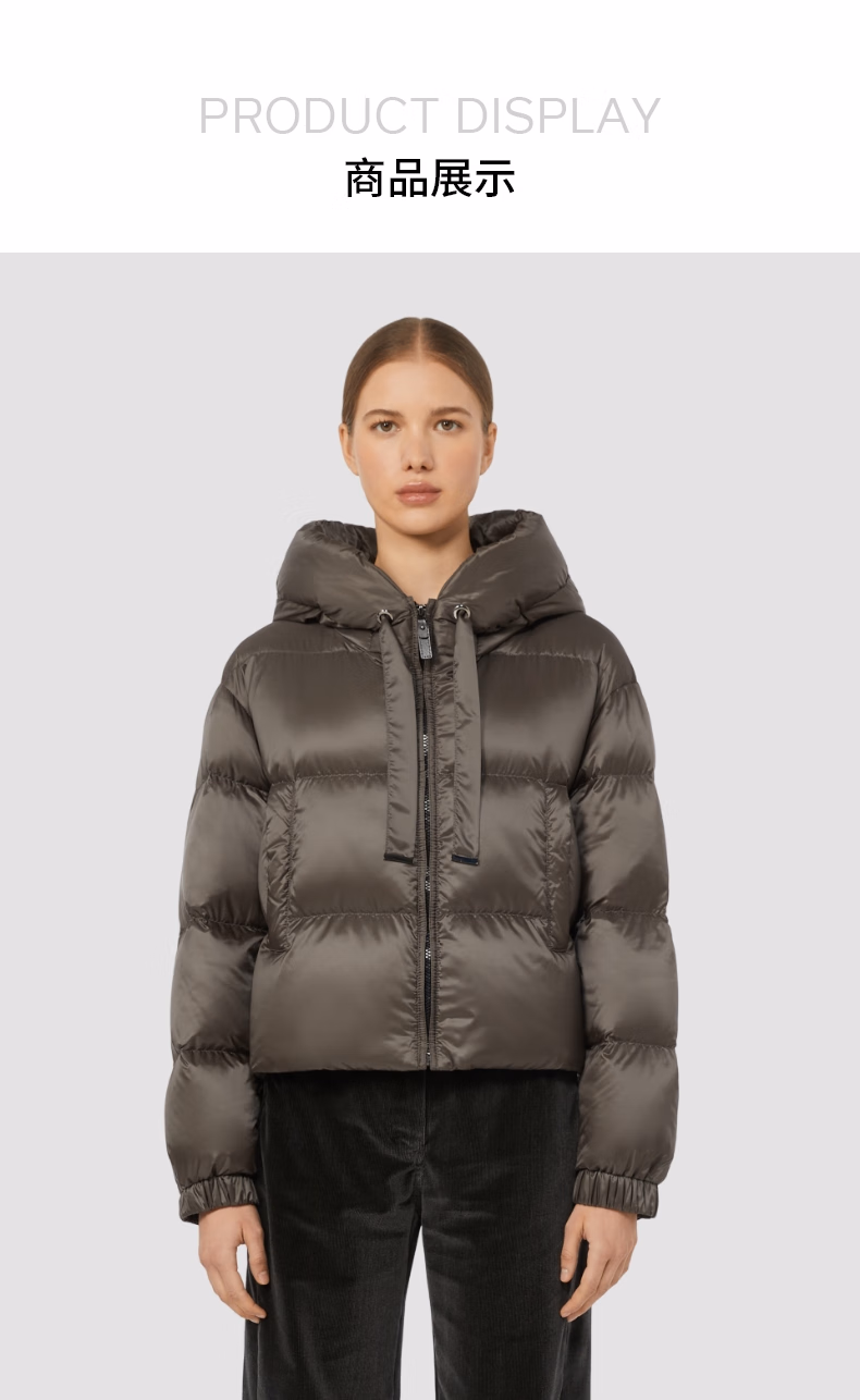 2025秋冬新品女装抽绳连帽短款羽绒服 灰色